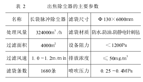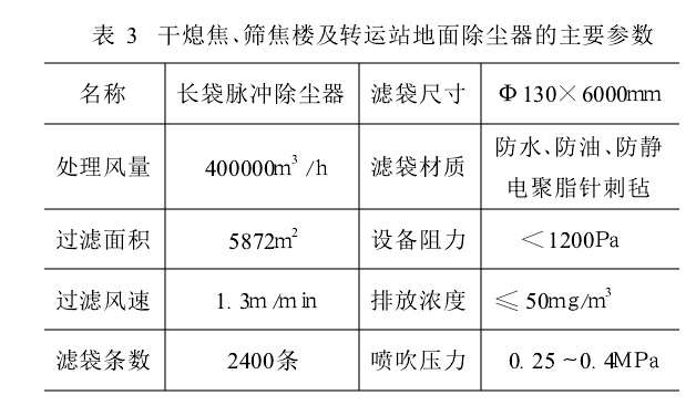 表3干熄焦、篩焦樓及轉(zhuǎn)運(yùn)站地而除塵器的主要參數(shù)