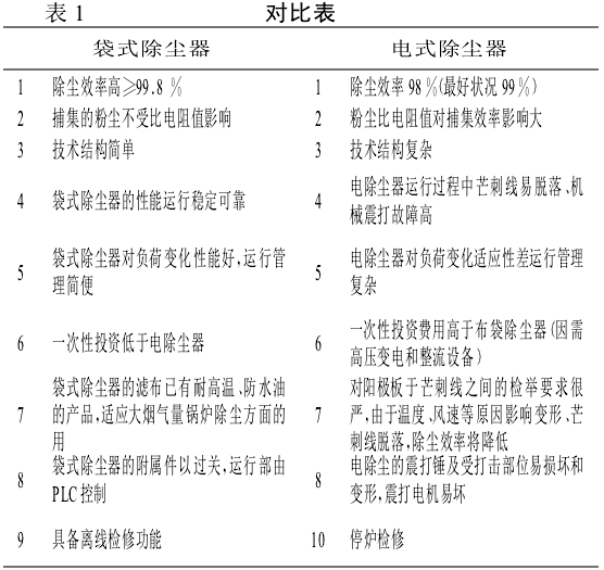 2、布袋除塵器和電除塵器運行可靠性對比: